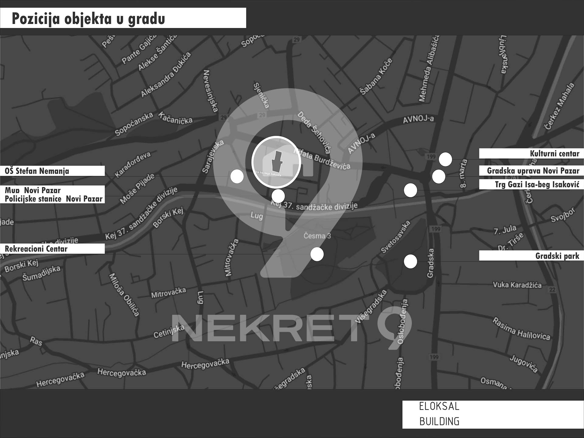Central Park Residence je ekskluzivni stambeno-poslovni kompleks koji se nalazi na jednoj od najtraženijih lokacija u Novom Pazaru – u neposrednoj blizini Osnovne škole “Stefan Nemanja”, svega nekoliko minuta hoda od centra grada, ali i izdvojen od gradske buke, pružajući savršen balans urbanog i mirnog života. Ovaj moderan objekat smešten je u okruženju koje nudi sve što je potrebno za udoban i kvalitetan život: Rekreativni centar i zelene površine u neposrednoj blizini, idealne za šetnje, trčanje i boravak na otvorenom.
