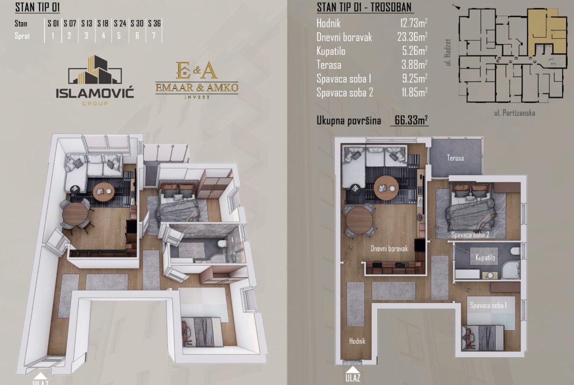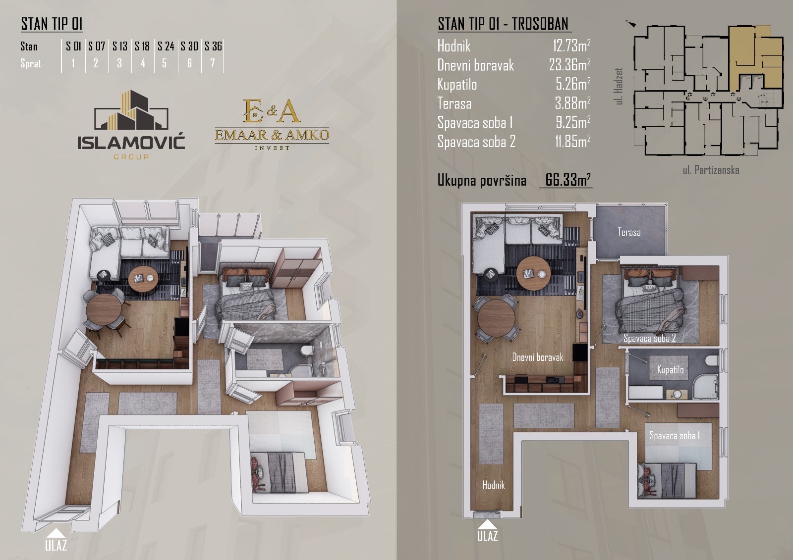 🏢 📍 Lokacija: Stambeno-poslovni kompleks E&A, Parizanska bb – u neposrednoj blizi kliničkog centra,osnovne škole i ostalih potrebnih ustanova!