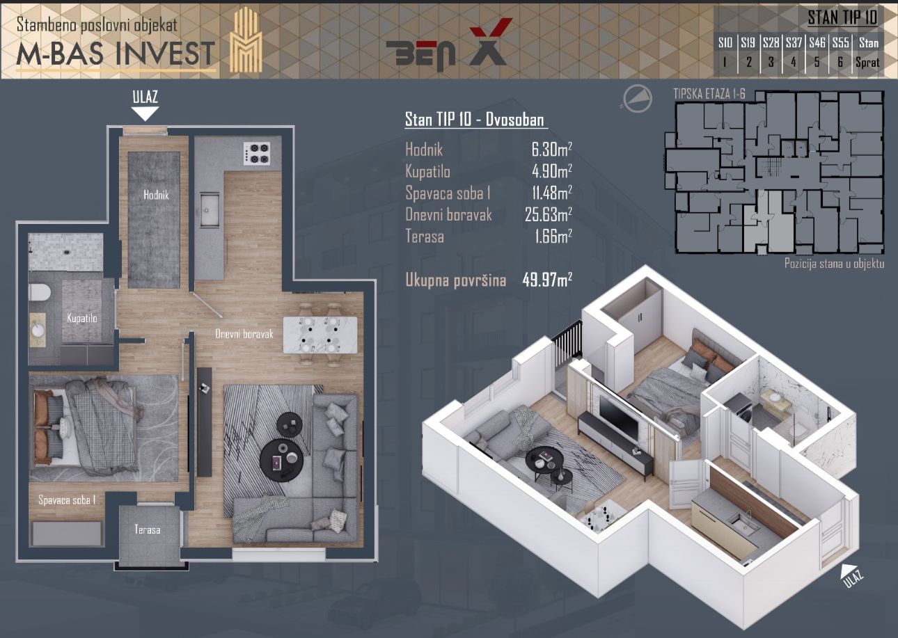 📍Zgrada se nalazi na mirnom mestu u ulici Kozaračka bb (iznad Generala Živkovića/bolnica) u stambeno-poslovnom kompleksu BenX!